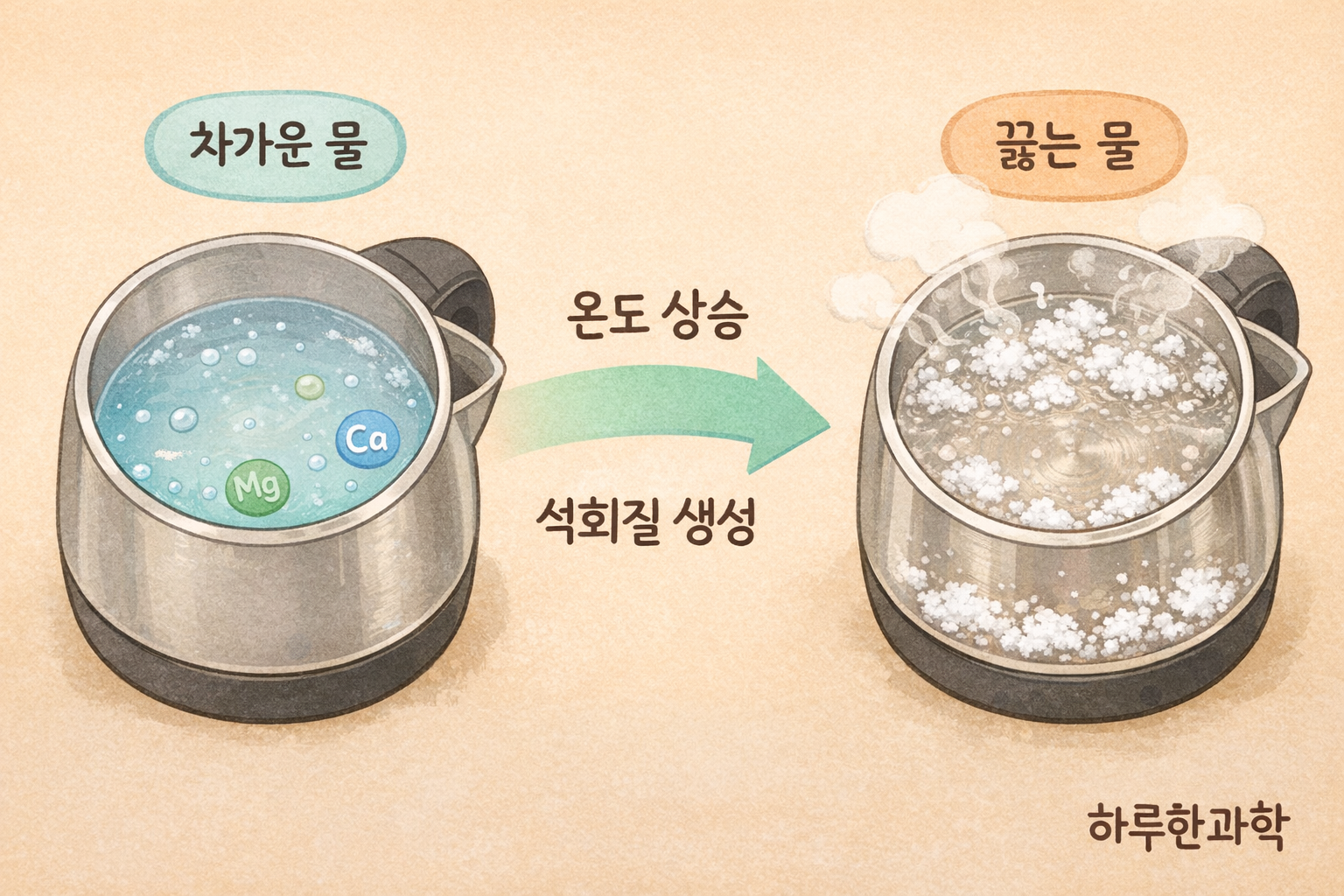 👉 온도가 높을수록 석회질이 더 잘 생깁니다.